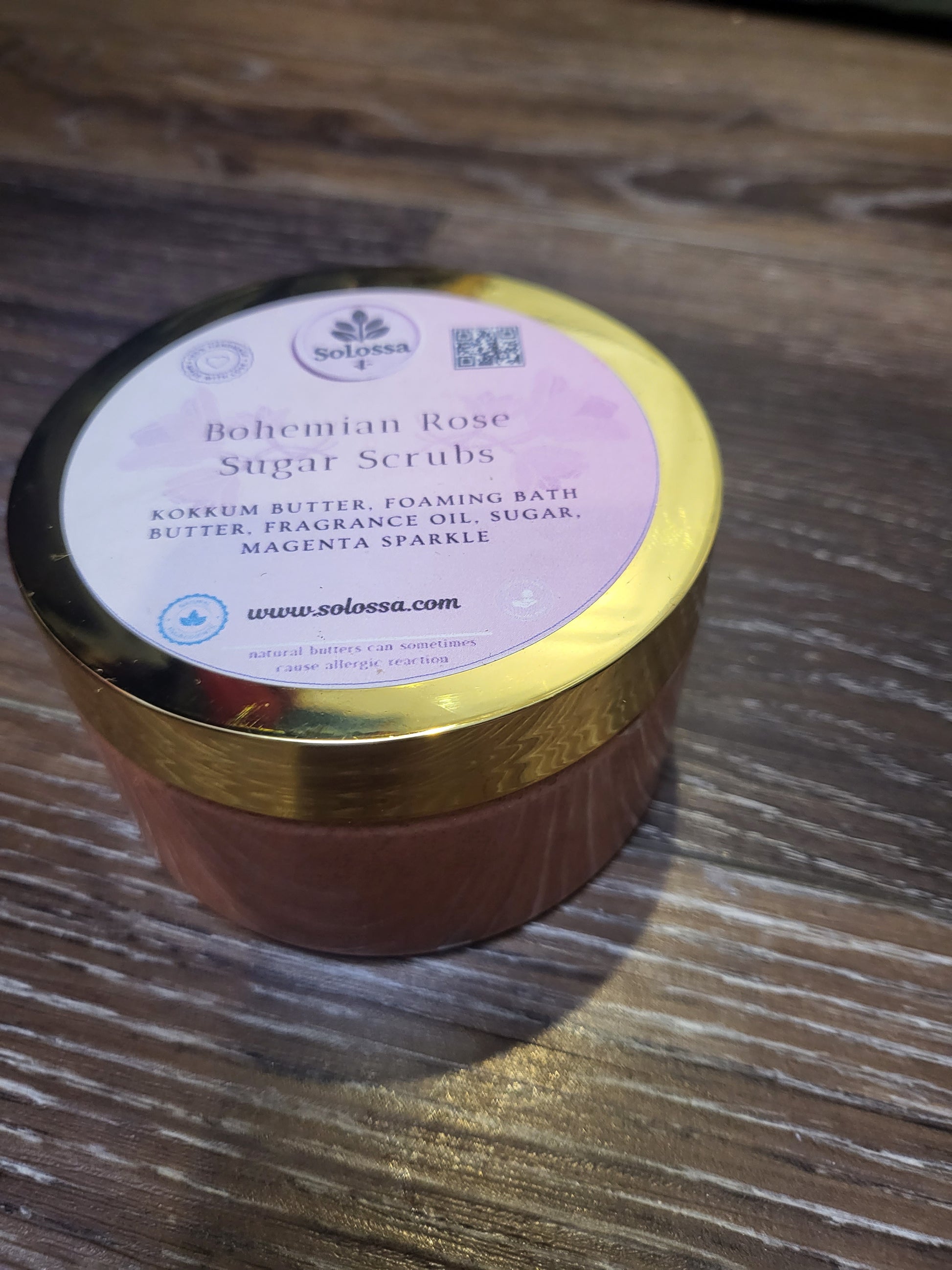 Ingredients: Sugar, Rose Petals, Rose Mica, Coconut Oil, Olive Oil, Exfoliating Cruelty-Free & Paraben-Free Soap.